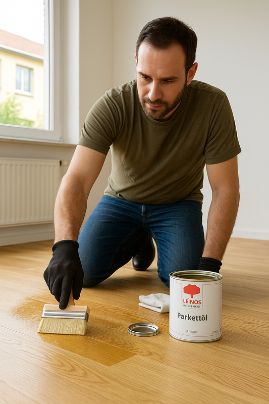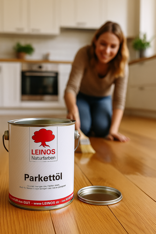 LEINOS 252 Parkettöl für Innen, 0,75 L – seidenmatt & farblos – natürliche Holzpflege für Parkett & Dielenböden – atmungsaktiv, wasserabweisend & strapazierfähig – lösemittelfrei & offenporig