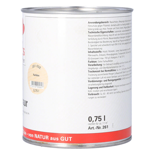 LEINOS 261 Holzlasur für Innen 002 Farblos 0,75 l