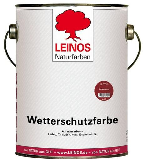 LEINOS Wetterschutzfarbe auf Wasserbasis 855 –2,5 l Schweden-Rot- Lösemittelfreier, matter Anstrich für unbehandelte Holzkonstruktionen im Außenbereich, ideal für sägeraues Holz