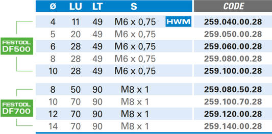 Nutfräser für Domino® System - Hartmetall Rechtslauf Schneide 2