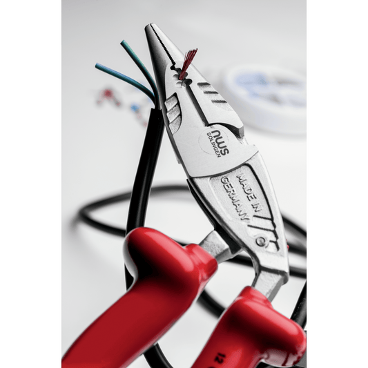 NWS VDE Elektriker-Seitenschneider 190m | 4 Funktionen: Schneiden - Abisolieren - Verpressen - Biegen | Schneiden zusätzlich induktiv gehärtet