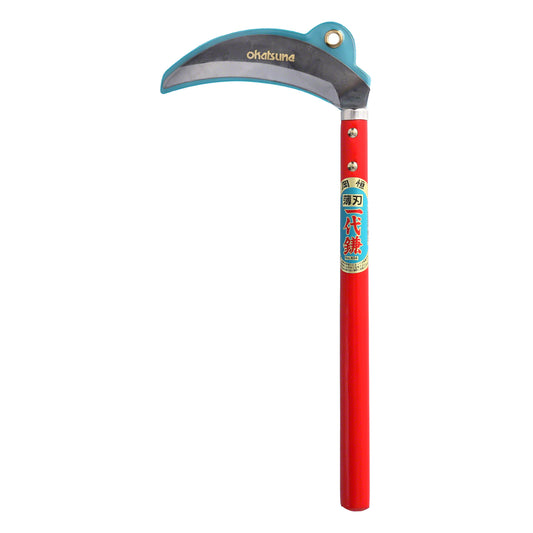 Okatsune 404 Grassichel, gekrümmte Klinge mit einer Länge von 150 mm und eine Dicke von 1,4 mm.