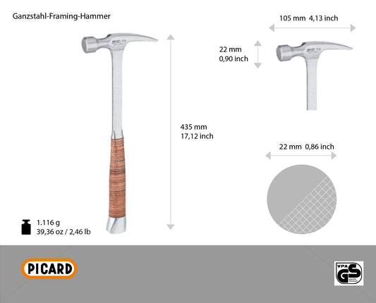 Picard 790 1/2 Ganzstahl-Latthammer, geraute Bahn