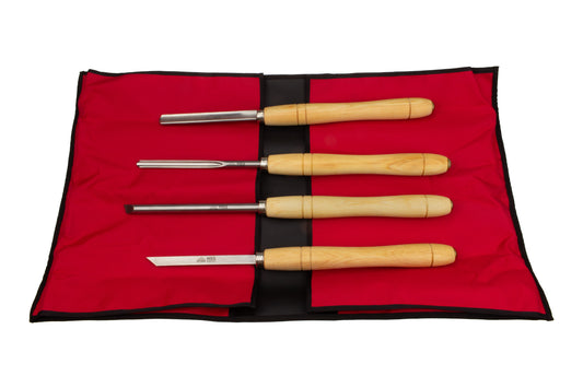 STUBAI Drechselset 4-tlg. Grundausstattung – HSS Formröhre, Schüssel-Drehröhre, Ausdrehstahl, Abstecher – Rolltasche 5000R2 – Profiwerkzeug für Drechsler