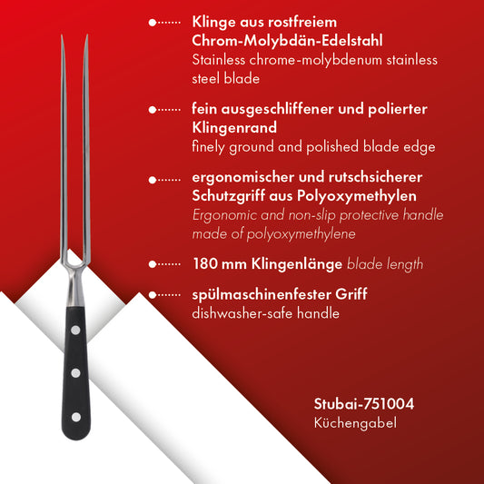 STUBAI Küchengabel | 180 mm | Fleischgabel aus einem Stück im Gesenk geschmiedet, aus Edelstahl, rostfrei, spülmaschinenfest