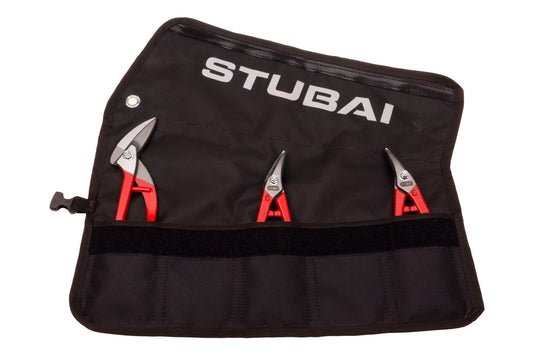 STUBAI Mini-Scheren-Set | Rolltasche, 3-teilig | nicht - isoliert | rechte & linke Blechschere | Mini Durchlaufschere | Profi-Spenglerwerkzeug kompakt & griffbereit