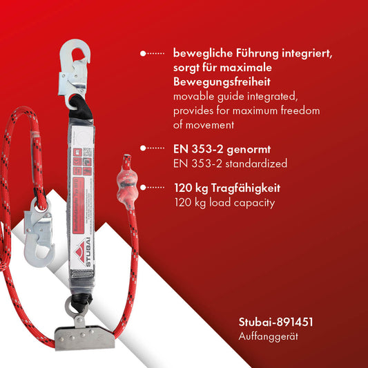 STUBAI mitlaufendes Auffanggerät | 15 m, 2700 g | ultimative Flexibilität und Sicherheit für bis zu 120 kg | EN 353-2