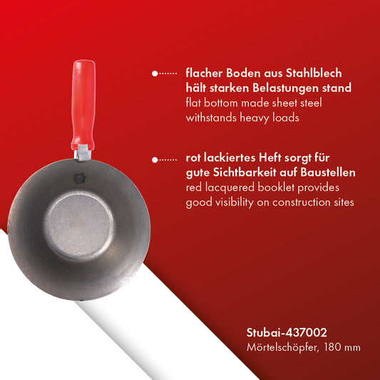STUBAI Mörtelpfanne verzinkt 180 mm | Profi Gipserpfanne inkl. rotem Holzheft für Putz- und Spachtelarbeiten, Betonarbeiten und zum Fliesenlegen im Innen- als auch im Außenbereich