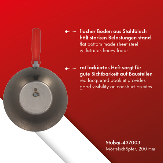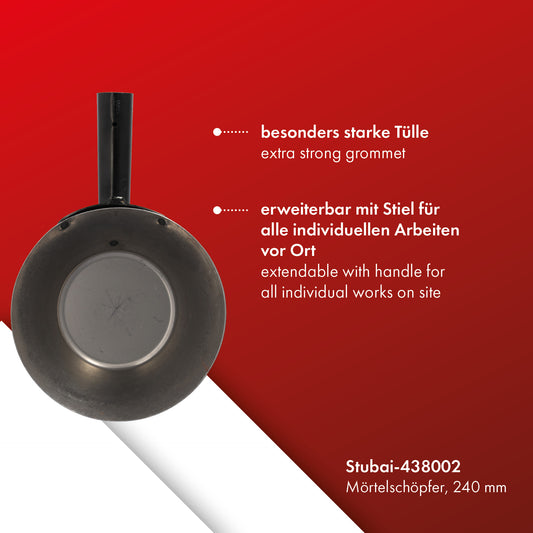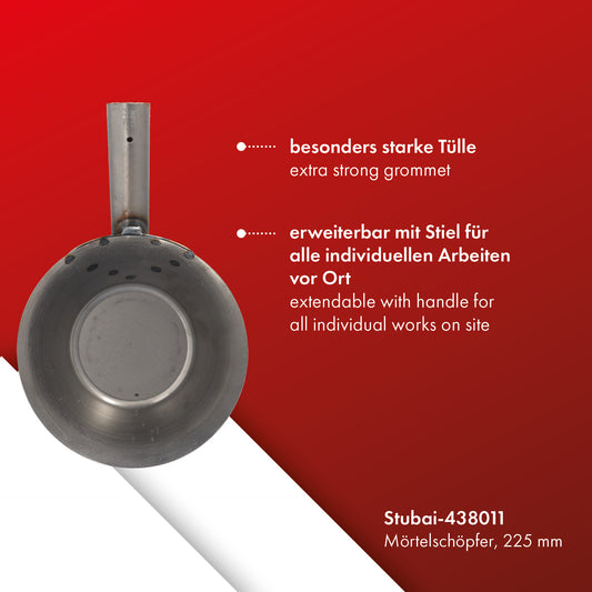 STUBAI Mörtelschöpfer Aktion 225 mm | mit Stiel | Profi Gipserpfanne für Putz- und Spachtelarbeiten, Betonarbeiten und zum Fliesenlegen im Innen- als auch im Außenbereich