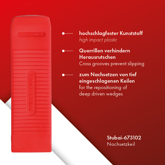 STUBAI Nachsetzkeil 200 mm aus Polyamid | 400g | Spaltkeil mit Querrillen, Holzspalter, Keil zum Fällen von Bäumen, für Forst, Garten und Camping