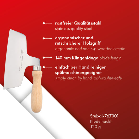STUBAI Nudelhackl 120 g – Nudelmesser aus rostfreiem Edelstahl mit Holzgriff, traditioneller Nudelschneider für Teigwaren, Nudelhacker für hausgemachte Pasta, Spätzle und Knöpfle
