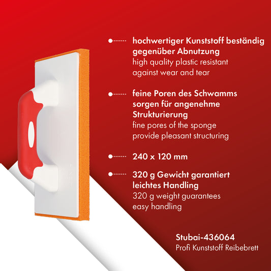 STUBAI Reibebrett feiner Schwammgummi 20 mm | 240 x 120 mm | Profi Kunststoffreibebrett für Verputzarbeiten, Betonarbeiten und zum Fliesenlegen im Innen- als auch im Außenbereich