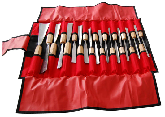 STUBAI Schnitzeisensatz poliert 21-tlg. | Hochwertiges Schnitzwerkzeug-Set mit 20 verschiedenen Schnitzeisen & Holzschlegel | Bildhauerei, Reliefs, Holzschnitzen | In robuster Rolltasche