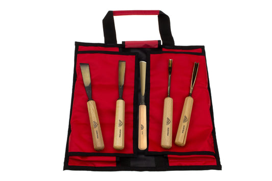 STUBAI Schnitzersatz S520 | 5-teiliges Schnitzwerkzeug-Set in Rolltasche | Enthält Balleisen 20 mm, Flacheisen 16 mm, Hohleisen 10 mm & 6 mm, Gaißfuß 6 mm | Für Anfänger & Fortgeschrittene
