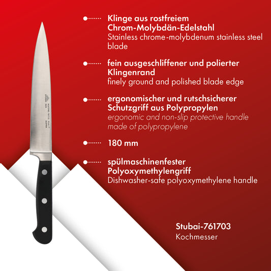 STUBAI schmales Kochmesser geschmiedet 180 mm | Küchenmesser aus Edelstahl für Schneiden von Fleisch, Geflügel, Gemüse, Obst & Lebensmitteln, spülmaschinenfest, schwarzer Griff