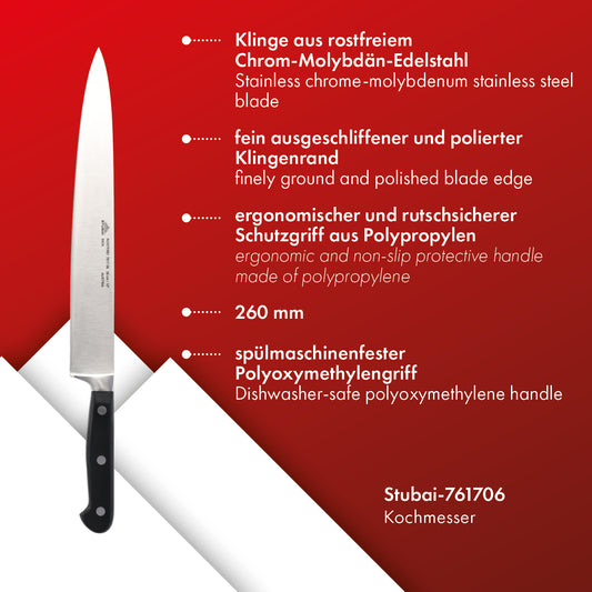STUBAI schmales Kochmesser geschmiedet 260 mm | Küchenmesser aus Edelstahl für Schneiden von Fleisch, Geflügel, Gemüse, Obst & Lebensmitteln, spülmaschinenfest, schwarzer Griff