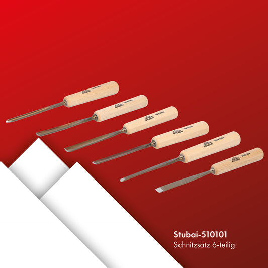 STUBAI Schnitzersatzset Kerbschnitzmesser Set Serie 52, 6-teilig - Balleisen 5 mm & 10 mm + Hohleisen 4 mm, 6 mm, 10 mm & 12 mm, Schnitzeisen mit Holzgriff, geschärft, zur Bearbeitung von Holz
