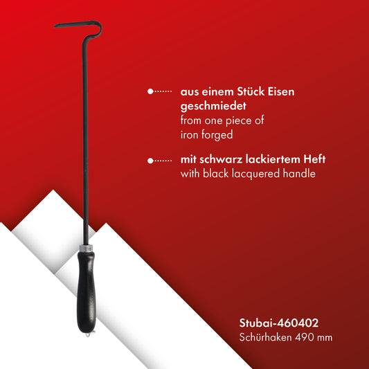 STUBAI Schürhaken 490 mm | Eisen geschmiedet | lackiertes Heft | Profi Schürstange passend zum Kaminbesteck