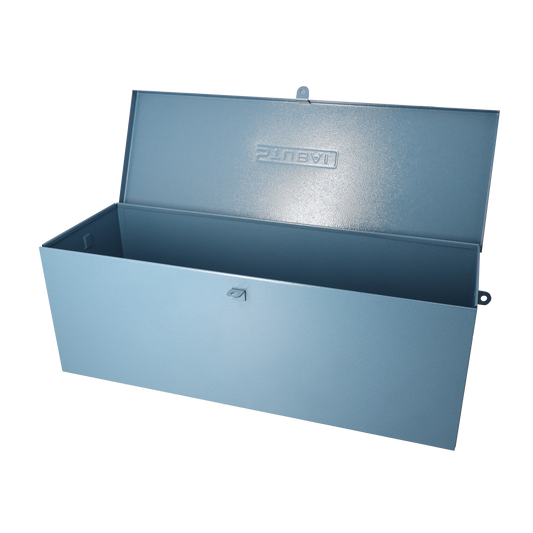 STUBAI Spengler-Werkzeugkoffer Nr. 4994 10 | 55x25x30 cm mit herausnehmbarem Einsatz & Vorrichtung zum Einhängen in Dachlattung | Stahlblech, blau lackiert, 0,7–0,8 mm Blechstärke