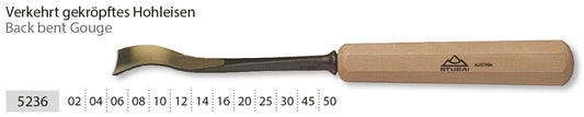 STUBAI Stemmeisen Stechbeitel Serie 52 - Form 36 | Verkehrt gekröpftes Hohleisen 12 mm, mit Holzgriff, für Figurenarbeiten, zur präzisen Bearbeitung von Holz, für Schreiner Tischler