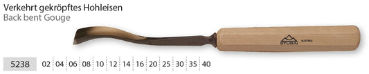STUBAI Stemmeisen Stechbeitel Serie 52 - Form 38 | Verkehrt gekröpftes Hohleisen 35 mm, mit Holzgriff, für Figurenarbeiten, Kerb- und Reliefschnitzarbeiten, zur präzisen Bearbeitung von Holz