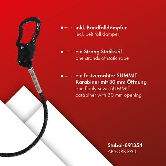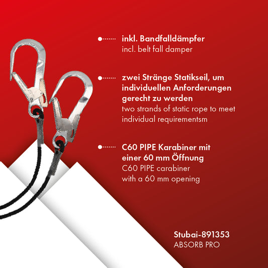 STUBAI Verbindungsmittel ABSORB PRO | zweiarmig 106 cm | Bandfalldämpfer mit einem Strang Statikseil EN 355, 362