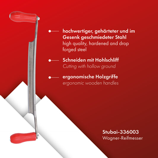 STUBAI Wagner-Reifmesser 240 mm | Zugmesser inklusive Schneidenschutz | geschmiedet, gehärtet und geschliffen mit Hohlschliff | ergonomische Holzgriffe | Art.-Nr. 3360 03 | Made in Austria