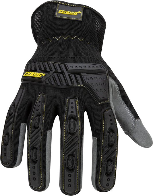 Estwing Schlagfester Arbeitshandschuh, Finger und Handfläche mit hohem Grip, Knöchelschutz, elastische Stulpe, 1 Paar, schwarz/grau Größe XL