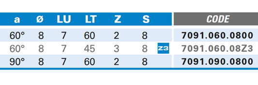 Vnut und Schriftenfräser - 60° Schneide 1 Hartmetall Rechts - 9,5 - 55 - 8