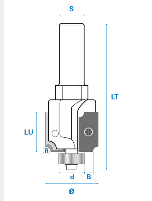 Bündigfräser mit Doppeltem Kugellager und Wendemesser - Hartmetall Rechtslauf Schneide 2