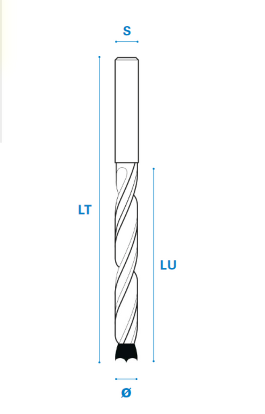 Dübelbohrer - Hartmetall Rechtslauf Schneide 2/V2