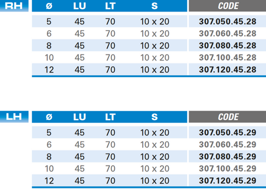 Durchgangslochbohrer 60° - Hartmetall Rechtslauf oder Linkslauf Schneide 2 , 60°