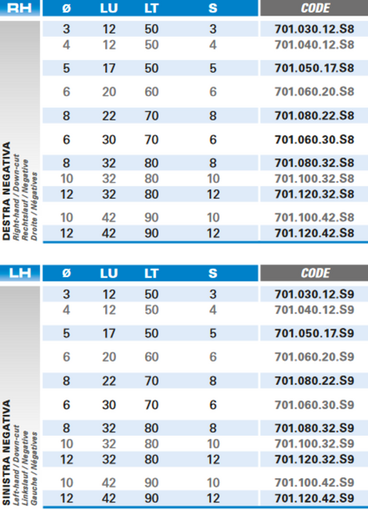 Einzahnschlichtfräser - Vollhartmetall Rechtslauf Linkslauf Negativ