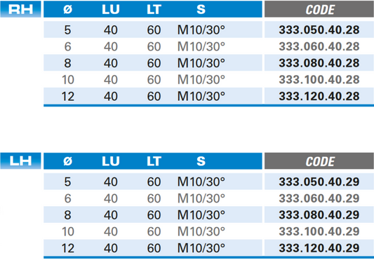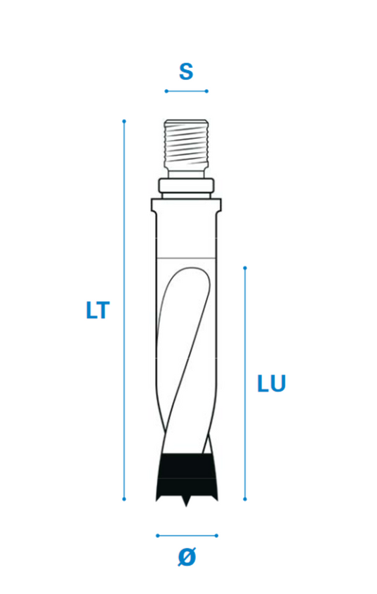 Dübelbohrer für Sacklöcher mit Gewindeschaft - Hartmetall - Rechtslauf oder Linkslauf - Schneide 2/V2