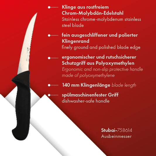 STUBAI Ausbeinmesser | 140 mm | Ausbeinmesser aus Edelstahl, rostfrei, spülmaschinenfest, Polyoxymethylengriff