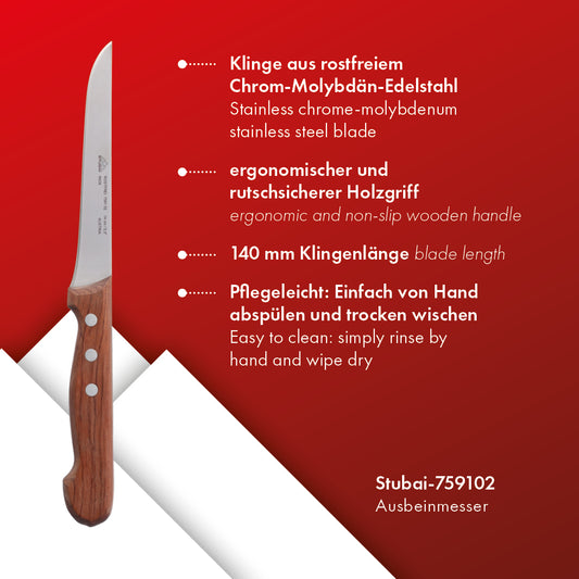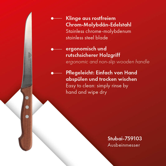 STUBAI Ausbeinmesser | 140 mm | Küchenmesser aus Edelstahl, rostfrei, mit Holzgriff