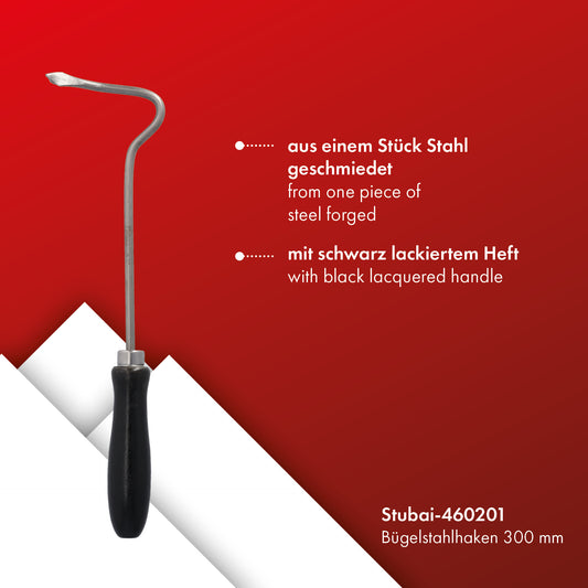 STUBAI Bügelstahlhaken 300 mm | Stahl geschmiedet | lackiertes Heft | Profi Schöpfhaken für Putz- und Spachtelarbeiten, Betonarbeiten