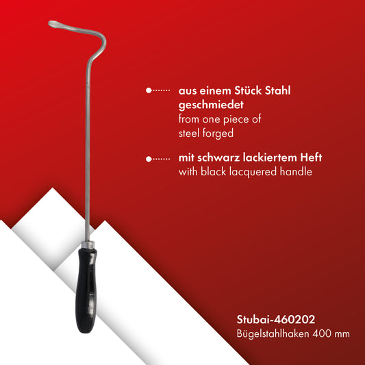 STUBAI Bügelstahlhaken 400 mm | Stahl geschmiedet | lackiertes Heft | Profi Schöpfhaken für Putz- und Spachtelarbeiten, Betonarbeiten