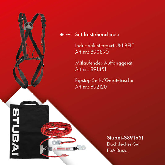 STUBAI Dachdecker-Set PSA Basic | Komplettgurt, Mitlaufendem Auffanggerät 15m Seil und Tragetasche für hohe Sicherheit und Komfort für Profikletterer | Klettersicherheitsausrüstung