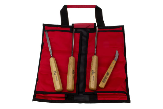 STUBAI S550 Schnitzersatz 4-tlg. „Einsteiger 55“ | Grundset für Holzschnitzerei & Bildhauerei | 4 Schnitzeisen & Messer für kleine Figuren, Reliefs & Details | Mit Rolltasche, ideal für Anfänger
