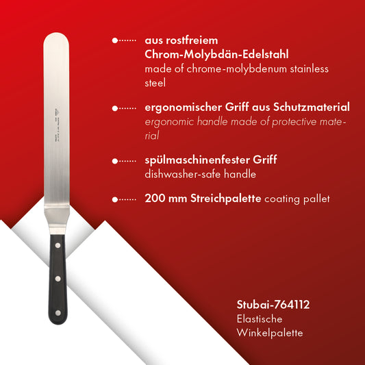 STUBAI elastische Winkelpalette 200 mm | gekröpfte Streichpalette Tortenspachtel aus Edelstahl zum Bestreichen, Dekorieren von Kuchen & Torten, spülmaschinenfest, für Küche, Konditorei