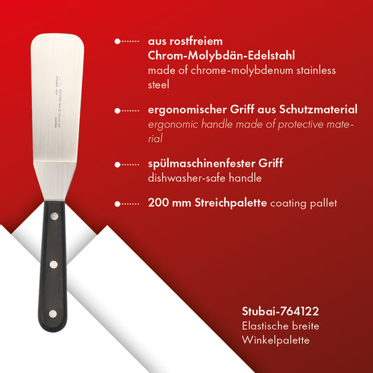 STUBAI elastische breite Winkelpalette 200 mm | gekröpfte Streichpalette Tortenspachtel aus Edelstahl zum Bestreichen, Dekorieren von Kuchen & Torten, spülmaschinenfest, für Küche, Konditorei