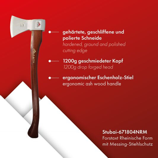 STUBAI Forstaxt Rheinische Form 1200 g | Geschmiedet & poliert | Leichte Spaltaxt & Fällaxt mit geschweiftem Eschenstiel 70 cm | Mit Stielschutz | Ideal zum Einschlagen von Fällkeilen & HolzspaltenAnbieter:StubaiNormaler Preis €62,25 EURNormaler PreisGrundpreis / pro-