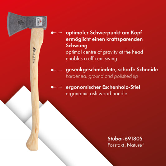 STUBAI Forstaxt | 1000 g Kopfgewicht | Axt Rheinische Form aus Stahl mit Holzgriff, kleine Axt zur Wald- und Gartenarbeit, Fällaxt, Spaltaxt, UniversalaxtAnbieter:StubaiNormaler Preis €50,91 EURNormaler PreisGrundpreis / pro-
