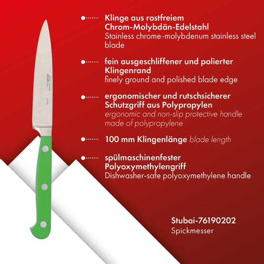 STUBAI hochwertiges Spickmesser geschmiedet | 100 mm | Gemüsemesser Küchenmesser aus Edelstahl für müheloses Schneiden von Gemüse, Obst & Lebensmitteln, spülmaschinenfest, grüner Griff