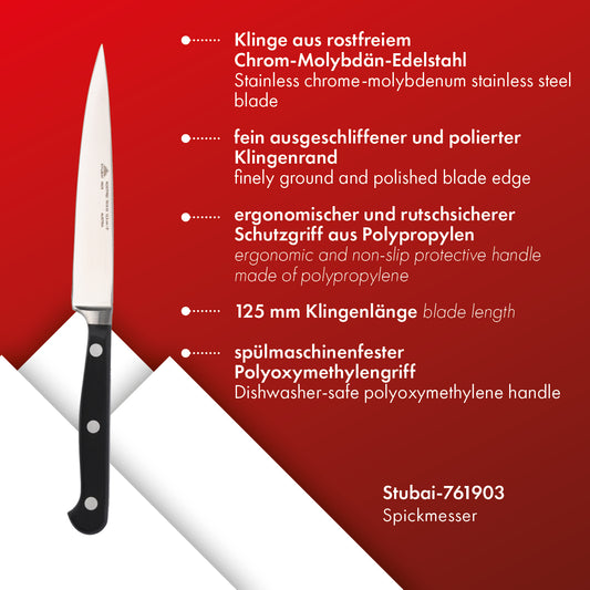 STUBAI hochwertiges Spickmesser geschmiedet | 125 mm | Küchenmesser aus Edelstahl für müheloses Schneiden von Fleisch, Obst & Lebensmitteln, spülmaschinenfest, schwarzer Griff