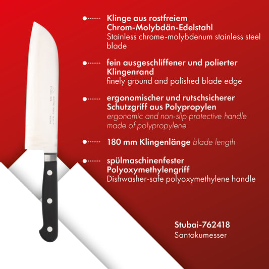 STUBAI hochwertiges Santokumesser geschmiedet | 180 mm | Küchenmesser aus Edelstahl für Schneiden von Fleisch, Geflügel, Gemüse, Obst & Lebensmitteln, spülmaschinenfest, schwarzer Griff