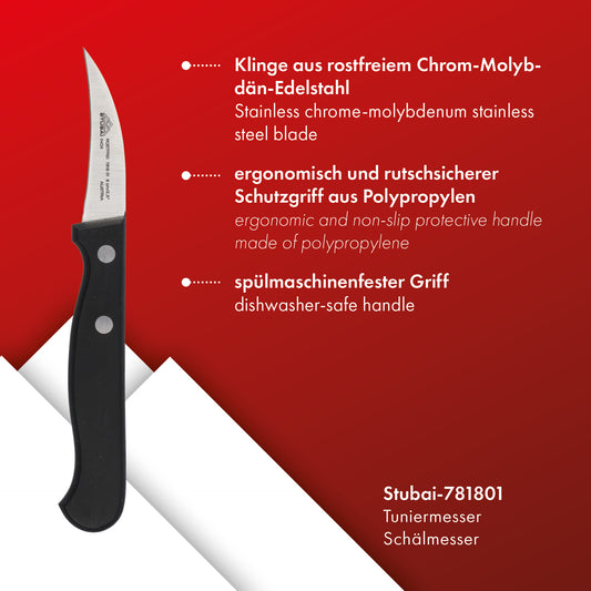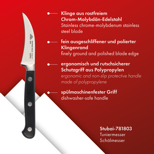 STUBAI hochwertiges Tourniermesser Schälmesser geschmiedet | 75 mm | Gemüsemesser Obstmesser aus Edelstahl für müheloses Schneiden von Gemüse, Obst & Lebensmitteln, spülmaschinenfest