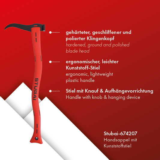 STUBAI Handsappel mit rotem Kunststoffstiel | 600 mm | Sappel zum Aufnehmen und Transportieren von kleineren Holzstücken und Baumstämmen