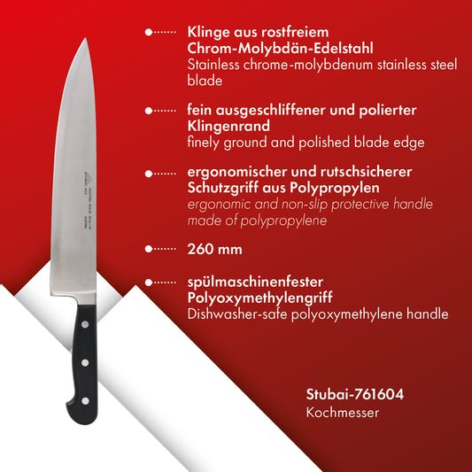 STUBAI hochwertiges breites Kochmesser geschmiedet | 260 mm | Küchenmesser aus Edelstahl für Schneiden von Fleisch, Geflügel, Gemüse, Obst & Lebensmitteln, spülmaschinenfest, schwarzer Griff